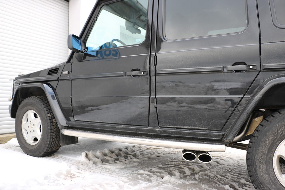 Mercedes G-Klasse G500 - 463 (mit Trittbrett) Endschalldämpfer Ausgang seitlich - 2x115x85 Typ 38 (2x nach links abgeschrägt)