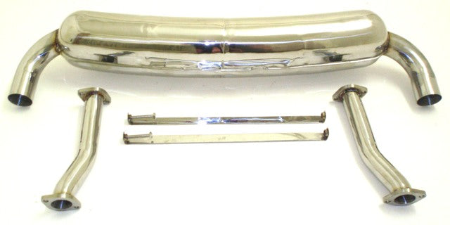 nur mit unseren Fächerkrümmern passend / Wärmetauscher entfallen / Endrohr 70mm rund scharfkantig links + rechts