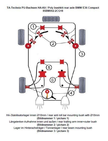 TA Technix PU-Buchsen Kit 20-teilig / Hinterachse mit Ø 18mm Stabi / passend für BMW 3er Serie E36 Compact / Z3 Roadster/Coupe