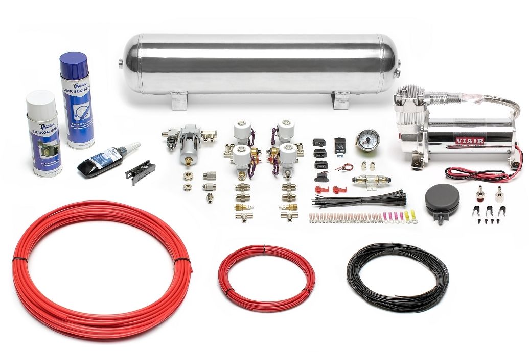 TA Technix Lufterzeugungskit 444er Viair Kompressor / 19L Chromtank / Anzeige Weiß / Schlauch Rot