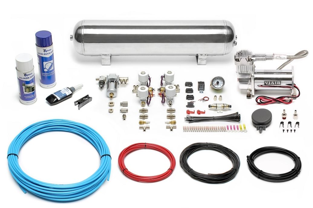 TA Technix Lufterzeugungskit 380er Viair Kompressor / 19L Chromtank / Anzeige Weiß / Schlauch Hell Blau